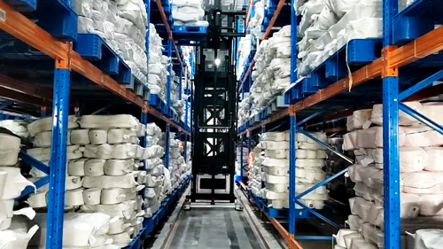 Project implementation area: yarn silo, semi-finished product silo, production line, towel semi-finished product warehouse. Yufeng Intelligent with hardware and software integration of flexible intelligent logistics solutions, integration of "MES+WMS+WCS" system, through the elevator, three-way AGV, bin type AGV, intelligent conveyor line and other intelligent equipment application, to help customers solve multi-regional, cross-floor cross-regional complex warehousing logistics problems. Improve logistics efficiency to achieve "moving, storage, production, personnel, delivery" each link of the front and back data synchronization, greatly shorten the product production cycle, to achieve production efficiency and product quality double improvement, this line concentrated yarn, coating, knitting, printing and dyeing, screen printing, drying, packaging and other links.