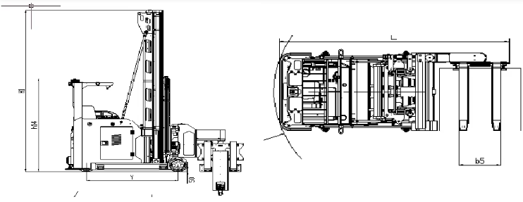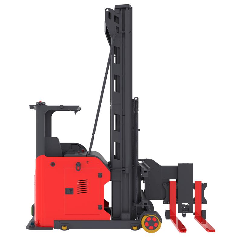 1.Designed for narrow-aisle warehouse operations indoors, requiring a minimum aisle width of only 1600mm, optimizing space utilization and significantly increasing storage capacity ; 2. The forks can rotate and shift left/right without requiring the vehicle to turn, greatly improving operational efficiency; 3. Supports LiFePO4 (Lithium Iron Phosphate) battery with an automatic charging system solution; 4. Equipped with CAN bus communication protocol for integrated vehicle control.