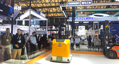 The 2T counterbalanced AMR exhibited this time is the debut of Yufeng Intelligent's new product. In operation scenarios such as production line docking, heavy-load stacking, and soft-package stacking, it can not only meet the needs of logistics stacking and transfer operations, but also has the advantages of good climbing ability and a large load range.
