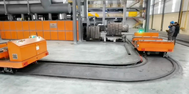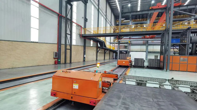 In the refractory materials industry, the efficiency of logistics transfer directly impacts the smoothness of the production process. This project introduces two sets of industry-first heavy-duty L-shaped circular shuttle car systems, combined with YuFeng’s independently developed RGV scheduling system, enabling fast and precise transfer of semi-finished and finished products between various processes. This innovation not only enhances logistics efficiency but also reduces human operation errors, further promoting the development of green intelligent warehousing.