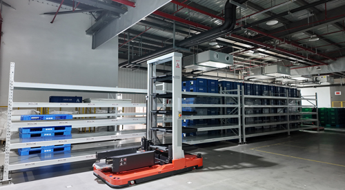 The system uses a dual-deep adjustable clamping telescopic fork, which adapts flexibly to different bin and carton sizes. Integrated with elevators and overhead conveyors, it optimizes in-plant material flow. Powered by EFORK's in-house WMS, WCS, and EFMS platforms, the solution achieves full-process data integration—covering personnel, machines, materials, methods, and environment—promoting deep integration of smart logistics and lean operations.