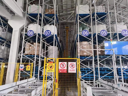 According to the raw material usage requirements of the customer company, the project uses double-extension curved track stacker, allowing each stacker to switch freely in multiple aisles. Compared with general straight track stacker, it greatly reduces the company's investment cost while meeting the customer's in and out of warehouse flow requirements.