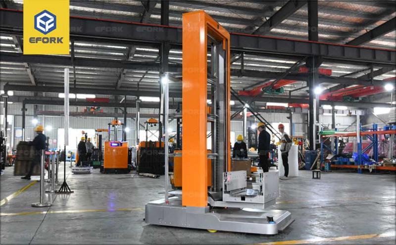 Temporary storage AGV has a temporary storage rack for temporary storage of bins, and can access and transport multiple bins at the same time, which can effectively improve the efficiency of handling and picking; compared with similar products, EFORK temporary storage AGV can be adapted to 900*600 *300/50KG cargo has a wider range of applications and is suitable for cargo transfer in various warehouses and workshops; the drive adopts two-wheel differential drive, which can realize the in-situ steering of the car body, reduce the width of the passage, and is equipped with multi-channel safety protection.The system improves the overall safety performance.